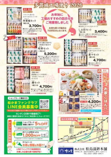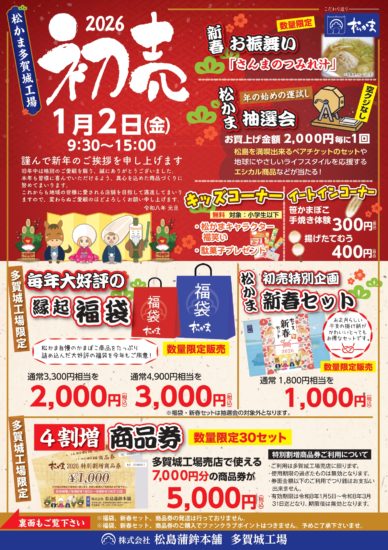 さて、松かま多賀城工場売店では1月2日(金)に初売を行います。
