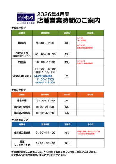【2026年4月 店舗営業時間について】